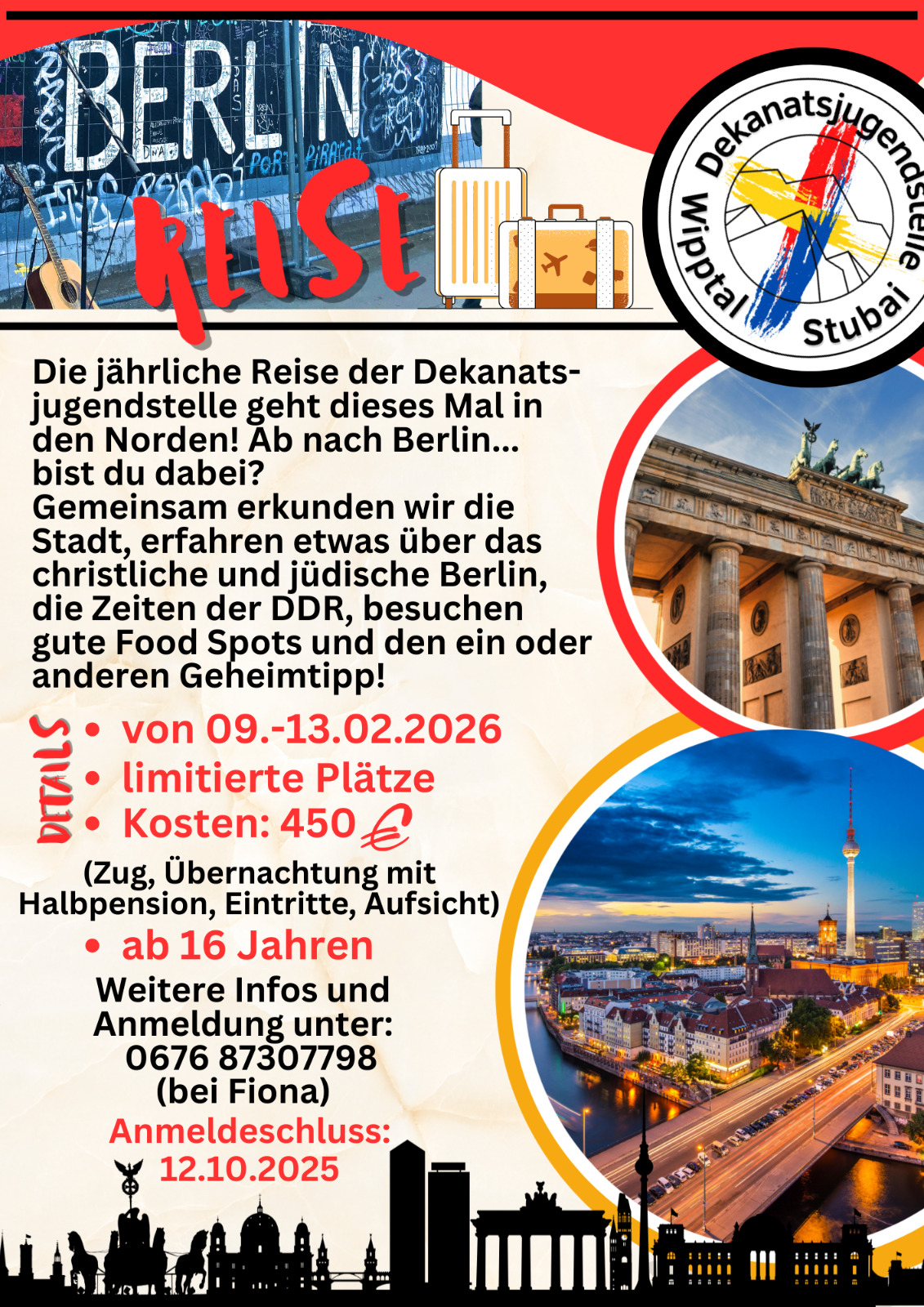 Die jährliche Reise der Dekanatsjugendstelle geht dieses Mal in den Norden...nach BERLIN! Bis du dabei?