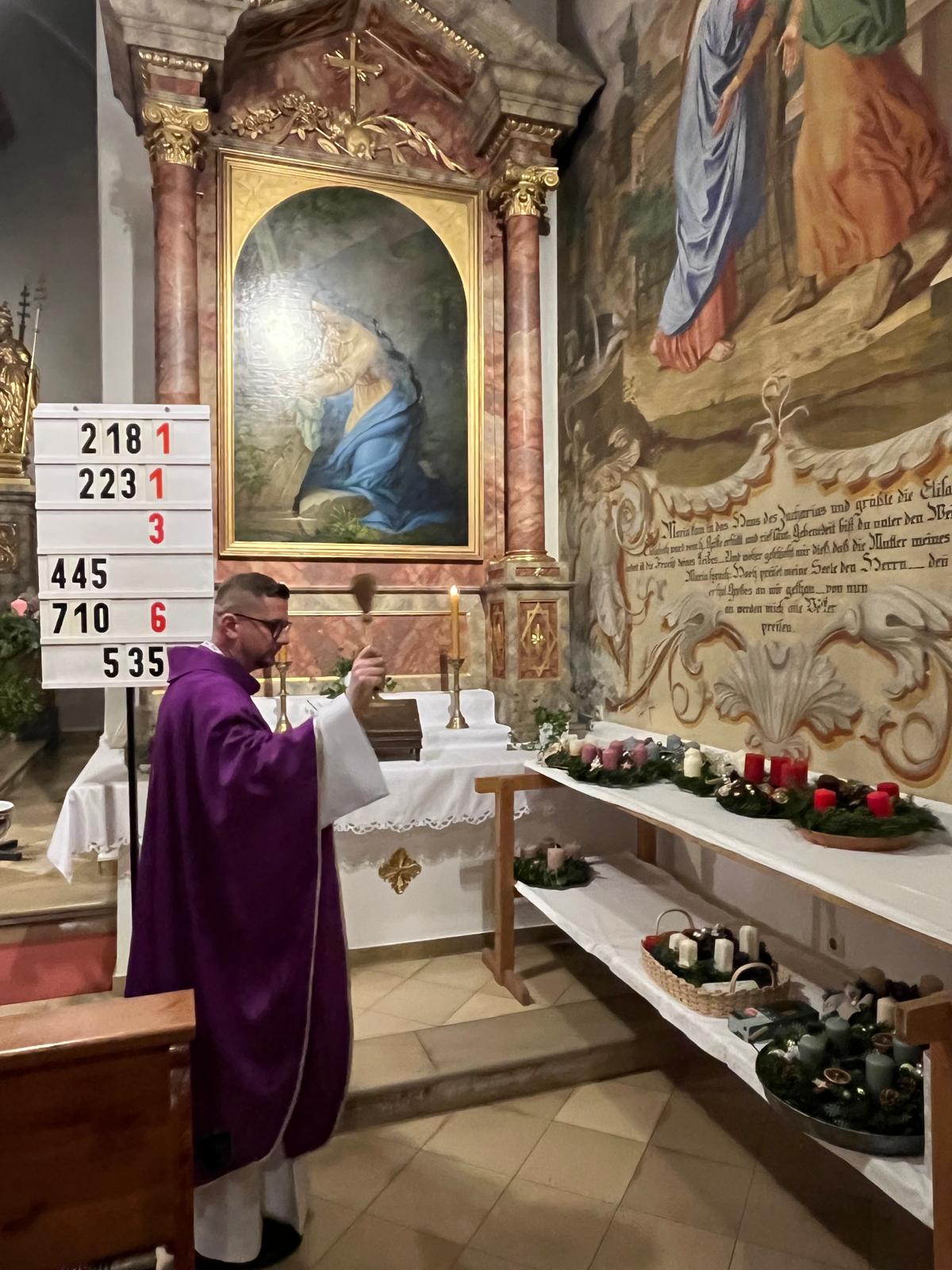 Im Mittelpunkt stand der Beginn des Advents, jener besonderen Zeit der Erwartung und Vorbereitung. Nach der Segnung entzündete unser Pfarrer die erste Kerze am Adventkranz, der dieses Jahr wieder von der Landjugend liebevoll gemacht wurde. Anschließend stimmten wir uns mit dem bekannten Lied „Wir sagen euch an den lieben Advent…“ auf die bevorstehende Zeit ein.