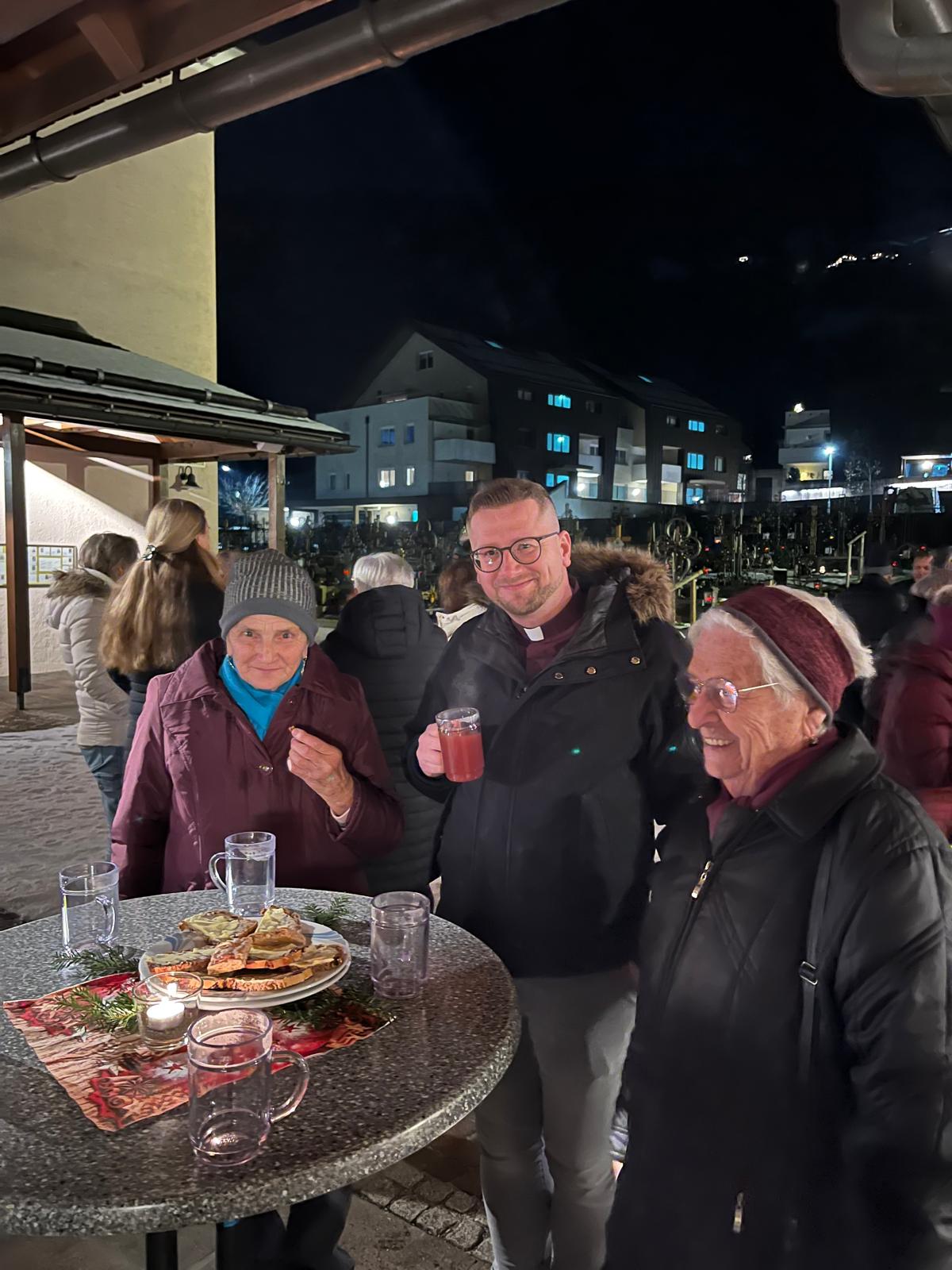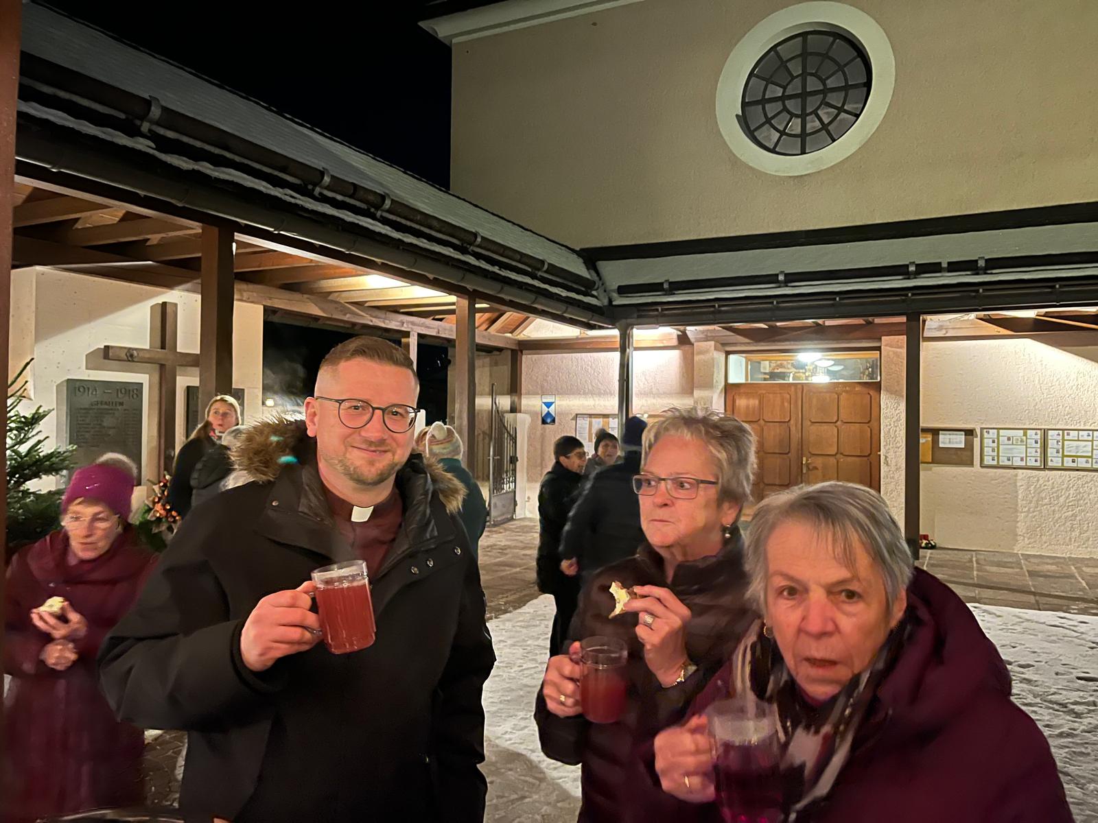 Im Anschluss an die Messe lud der Pfarrgemeinderat zu einer Agape ein. Bei Punsch, Glühwein, Zelten und Lebkuchen kamen wir rund um die wärmende Feuerschale gemütlich miteinander ins Gespräch.