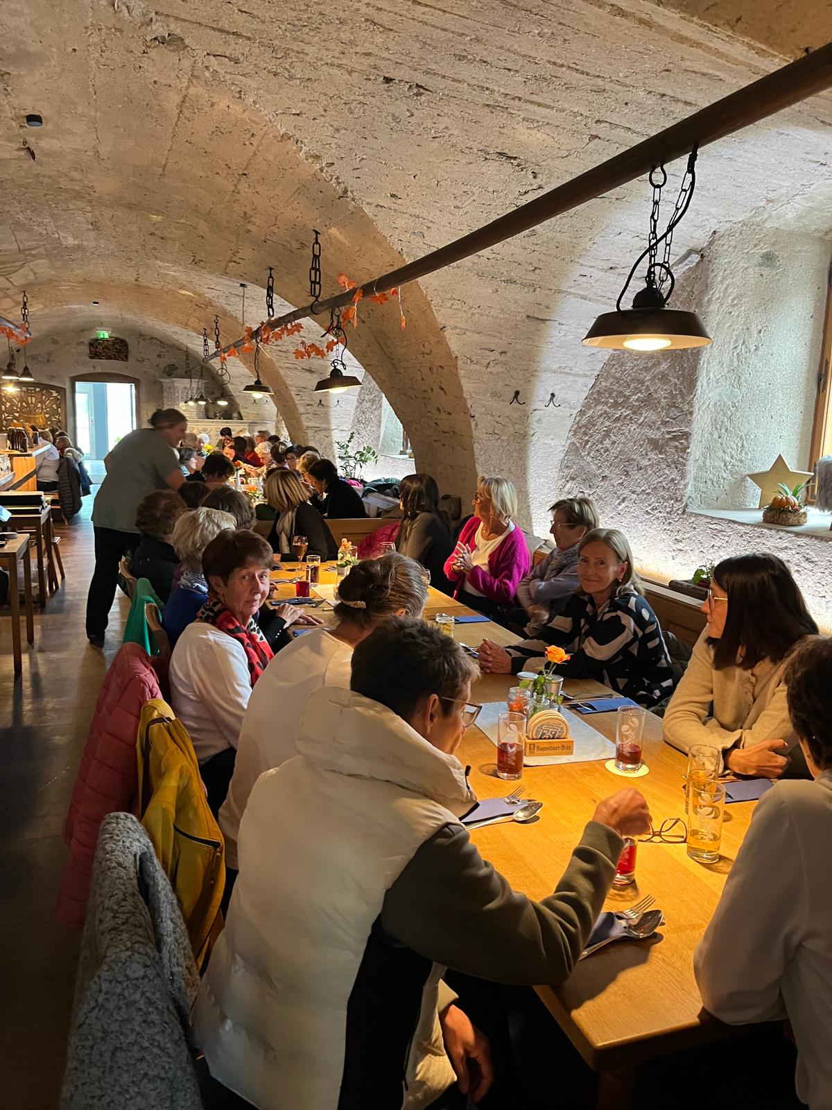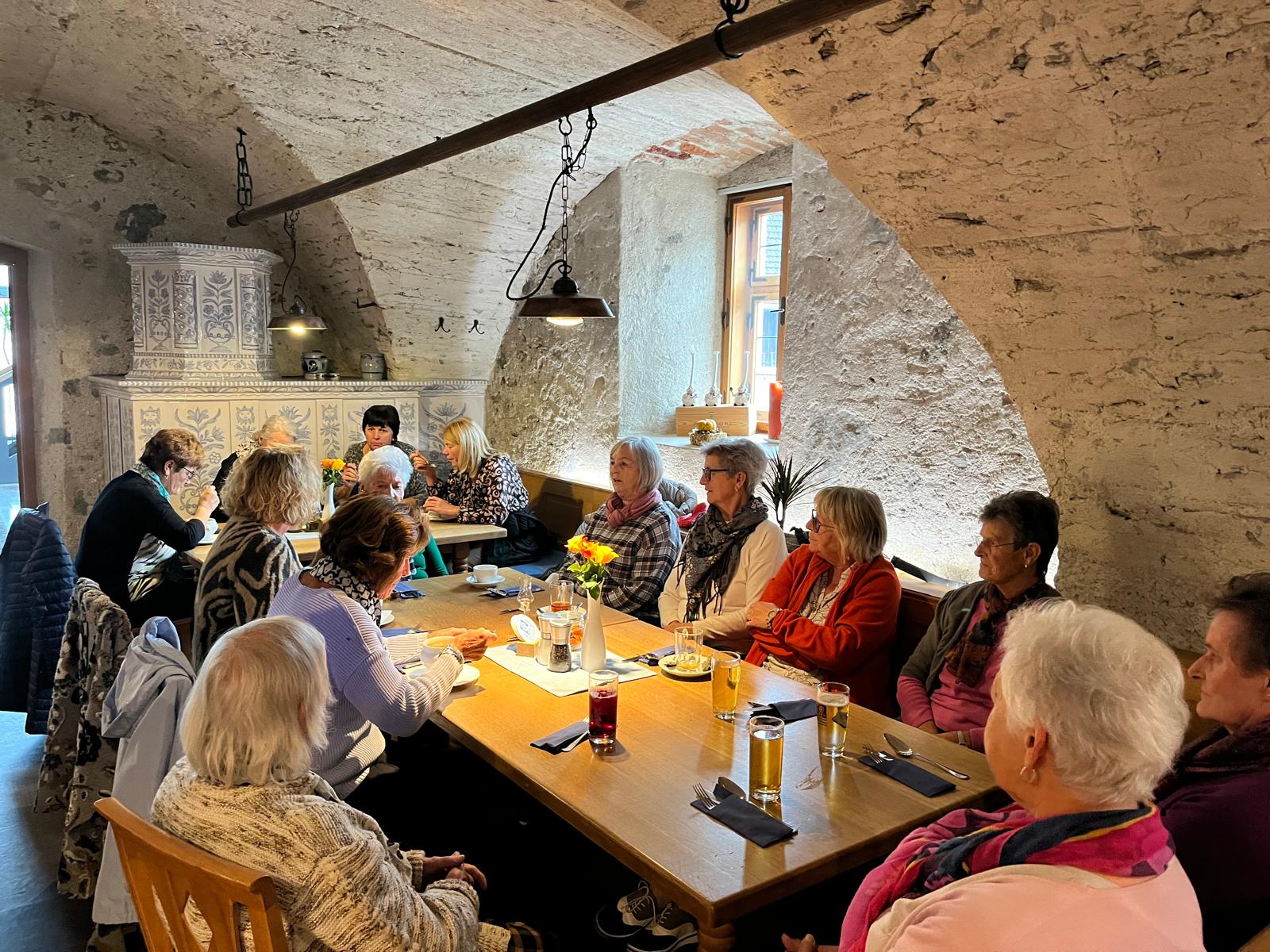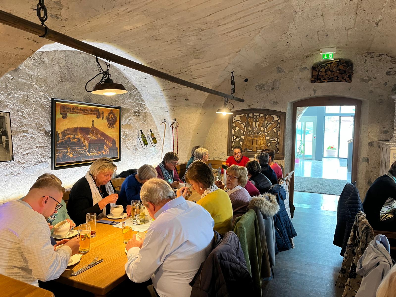 Nach dem Rundgang folgte ein gemeinsames Mittagessen in der Orangerie. Bei gutem Essen und netten Gesprächen genossen alle die gemeinsame Zeit. Am Nachmittag fuhren wir weiter nach Mieming, wo im Café Maurer bei Kaffee und Kuchen ein gemütlicher Abschluss stattfand. Gut gestärkt und mit vielen schönen Eindrücken traten wir schließlich die Heimfahrt an. Es war ein wunderschöner und bereichernder Tag, geprägt von Gemeinschaft, Glauben und Zuversicht.