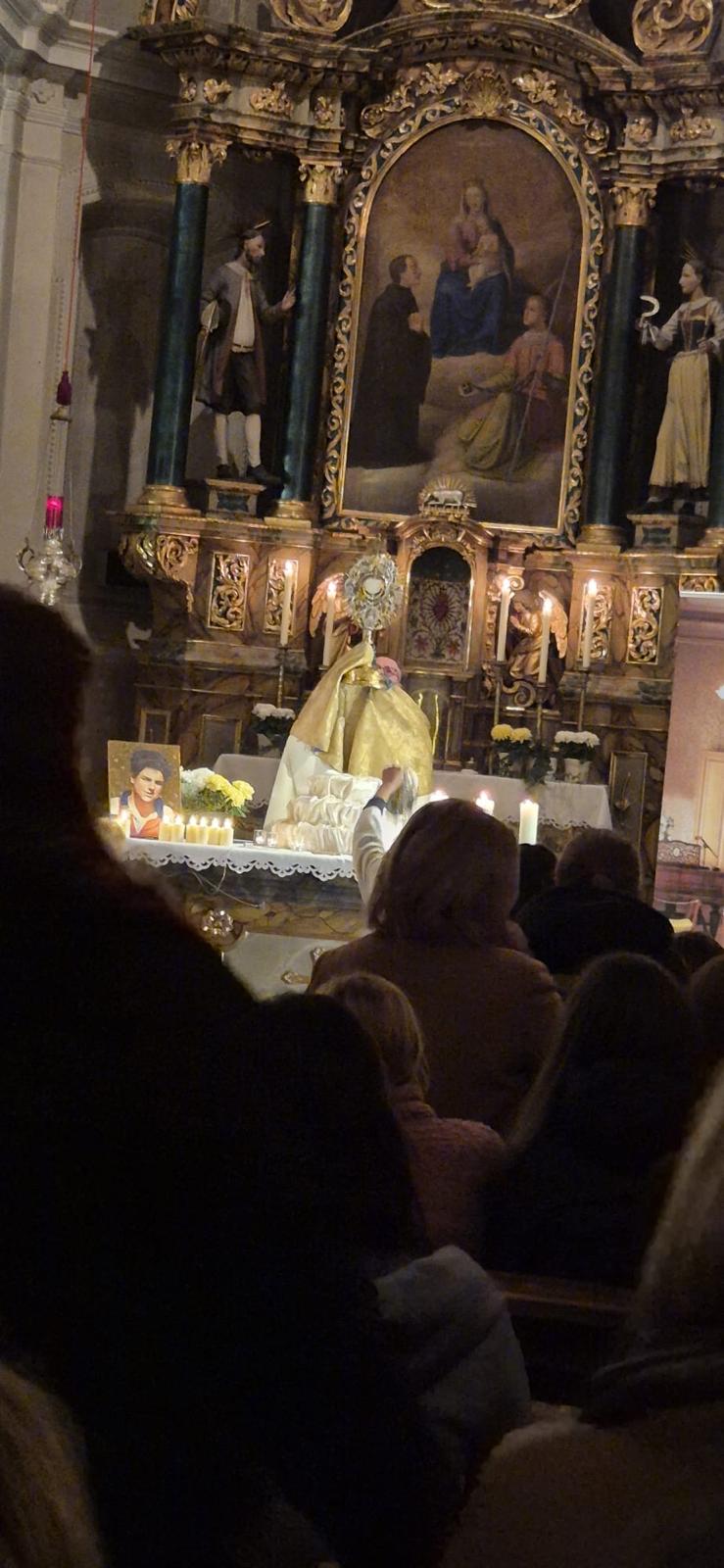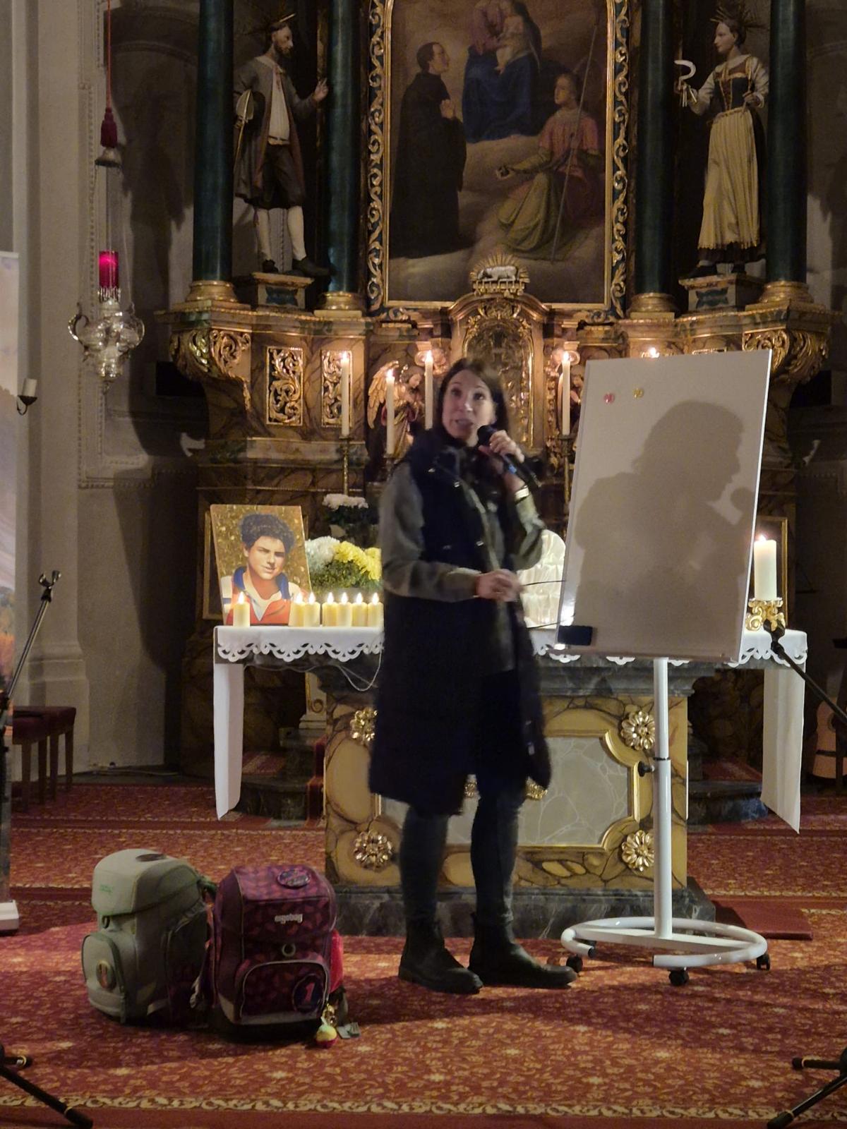 Den Anfang machte das Kindertheater über den heiligen Carlo Acutis. Mit großem Interesse lernten wir Carlo zuerst kennen und staunten nicht nur über seinen unversehrten Leib, sondern auch über sein großes Herz und seinen lebendigen Glauben. Mit schwungvollen Liedern wurde die Geschichte umrahmt. Als besonderen Höhepunkt durften wir alle am Ende des Theaters in der Heiligen Eucharistie Gott unseren Herrn in unserer Mitte begrüßen und anbeten.