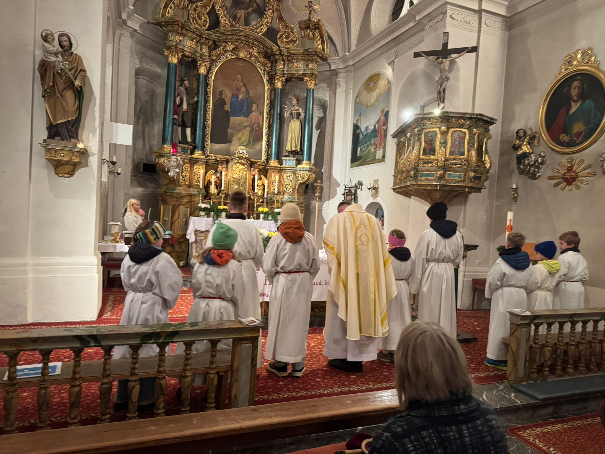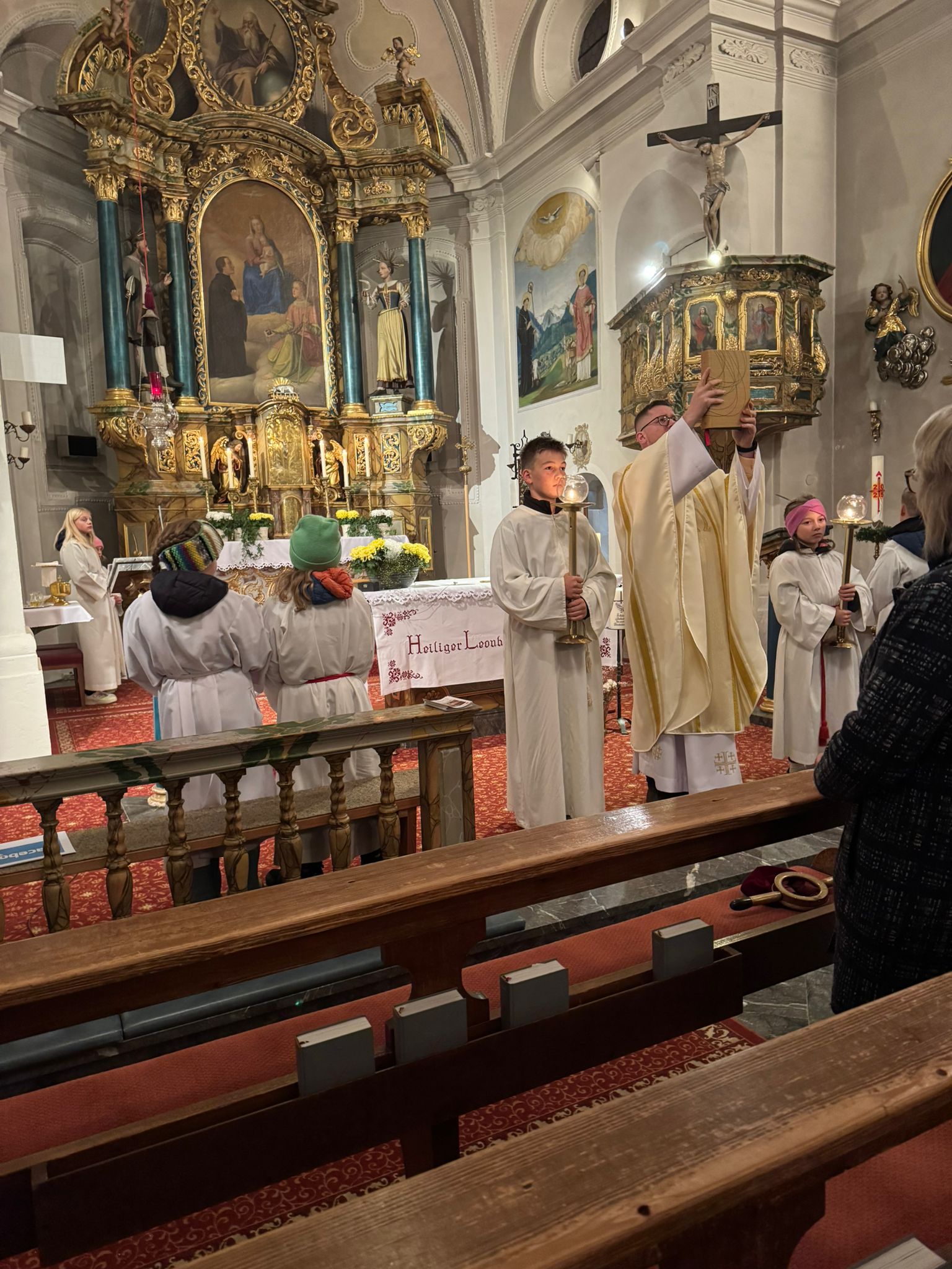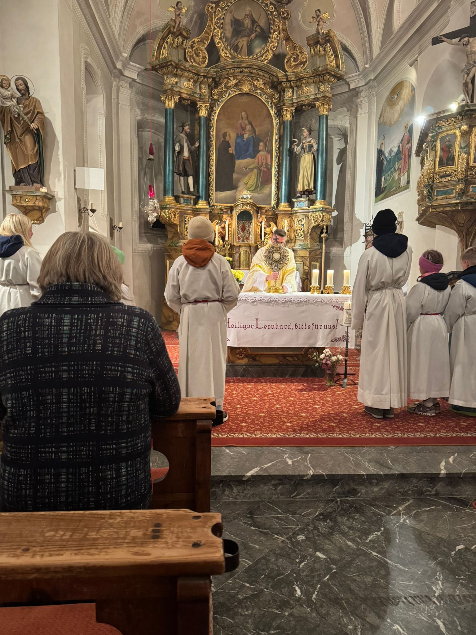 Zu Beginn der Feierlichkeiten zogen der Pfarrer und die Ministranten gemeinsam in die Kirche ein. Dabei wurde traditionell Weihrauch verwendet, um die Statue des heiligen Leonhard feierlich zu inzensieren, was die Gläubigen daran erinnerte, sich der besonderen Fürsprache ihres Schutzpatrons bewusst anzuvertrauen und sein Wirken in ihr Leben einzuladen.
