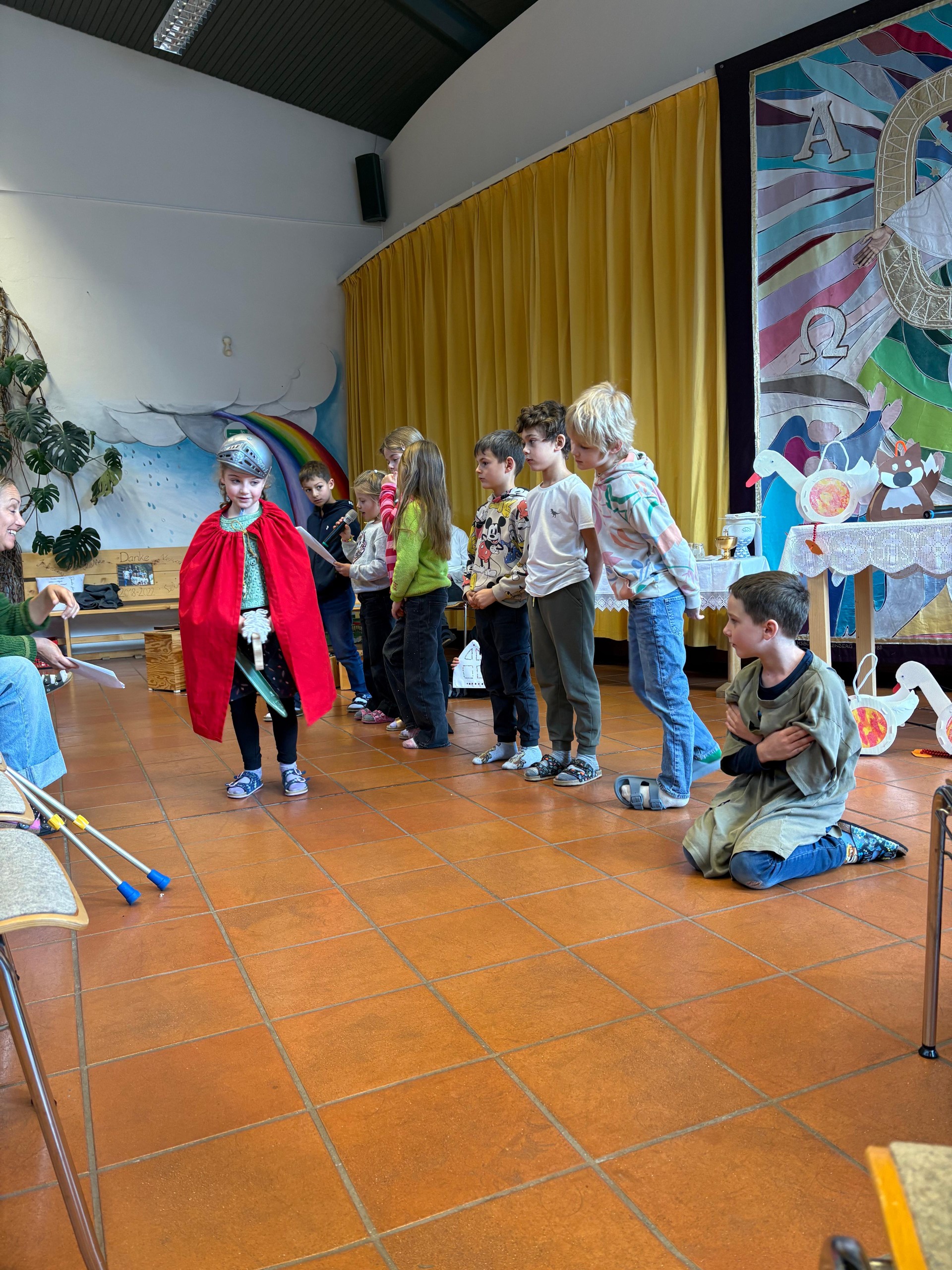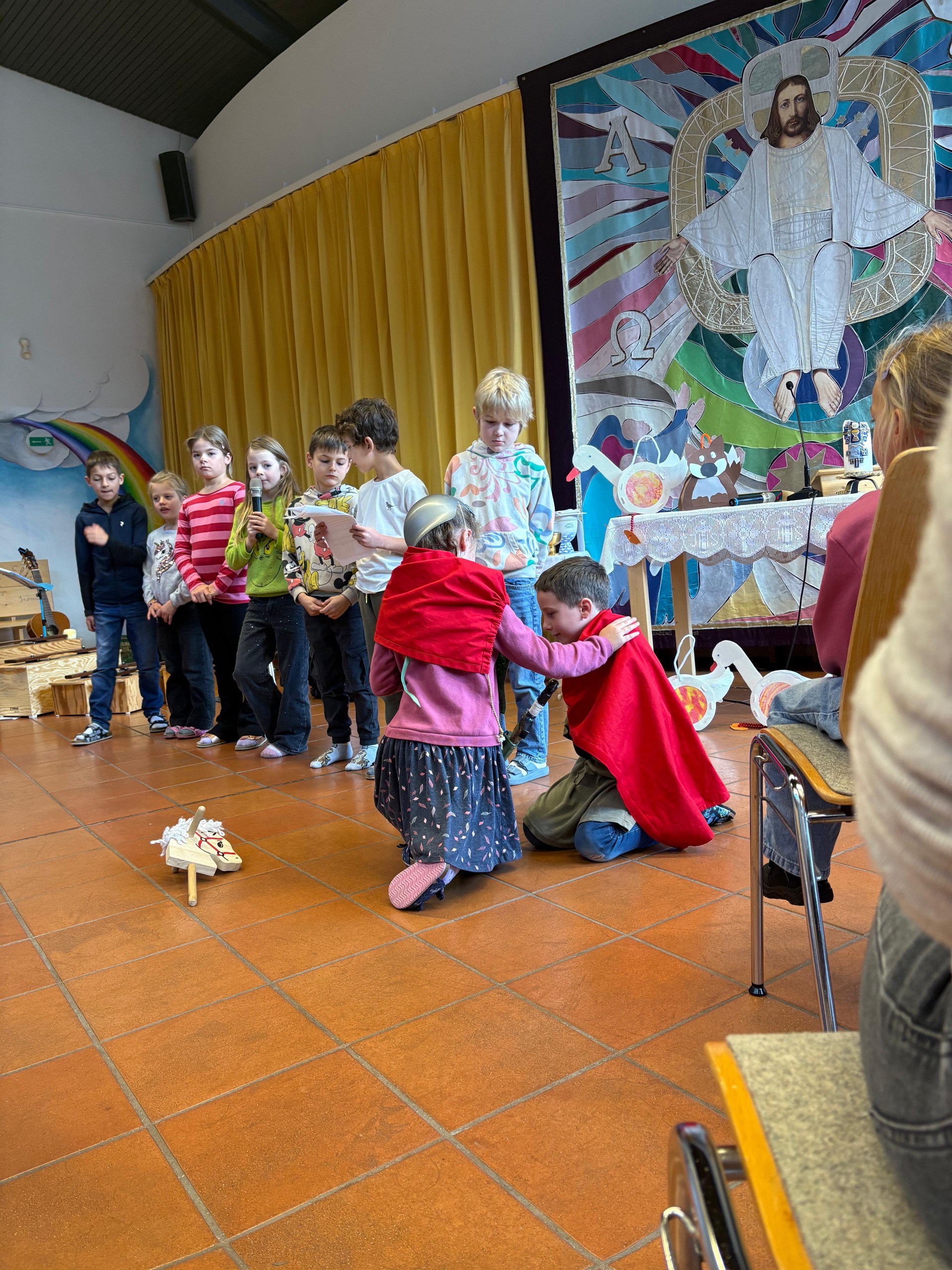 Die Volksschüler haben mit einem Rollenspiel gezeigt, dass Teilen die Welt wärmer macht. Denn auch kleine Dinge – wie jemandem helfen oder freundlich sein – können viel bewirken. Das einstudierte Rollenspiel mit Gedicht zur Geschichte des Heiligen Martin wurde von den Kindern der 1. und 2. Stufe toll nachgespielt.